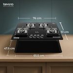 Beyond Appliances Dorado 4 Burner Smart Glass Hobtop Gas Stove | Auto Ignition | Digital Timer | Flame Failure Device | Toughened Glass | LPG & PNG Compatible