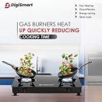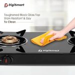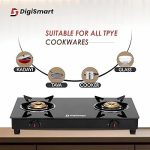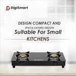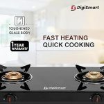 DIGISMART Gas Stove Burner for Kitchen, 2 Brass Plated Burners, ISI Certified, Toughened Glass Body, Spill Tray, Automation Ignition, Slick Knobs, Skid-proof Legs – 1 Year Warranty
