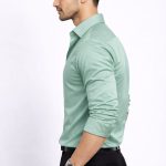 A refreshing mint green slim-fit shirt that delivers a clean, modern, and stylish formal look.