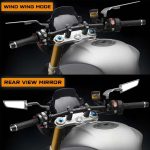 Elevate your riding experience with the OTOROYS 360° Adjustable Rotating Motorcycle Rear View Mirrors. Expertly crafted for style and functionality, these mirrors feature a sleek stealth wind wing design that enhances both the aesthetics and aerodynamics of your motorcycle. Whether you ride a Z400, Z650, Z900, GSX-S750, ABS 1290 Super Duke R, Evo ABS 390 Duke, or any other street bike, these mirrors offer a perfect fit and exceptional performance. The 360° adjustability allows you to rotate and position the mirrors to your preferred angle, providing a clear and comprehensive view of the road behind you. This feature is crucial for maintaining awareness of your surroundings and ensuring safe lane changes. Made from high-quality materials, these mirrors are designed to withstand the rigors of the road, including vibrations and harsh weather conditions, offering long-lasting durability. With easy installation options for 8mm and 10mm fittings, the OTOROYS convex mirrors are compatible with a wide range of motorcycles. Their stealth wind wing design not only reduces wind resistance but also contributes to a quieter, more streamlined ride. Upgrade your bike with these stylish and functional mirrors, and enjoy improved visibility and safety on every ride.