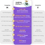 The Realme P3 Pro 5G is designed to elevate your smartphone experience. Powered by the Snapdragon 7s Gen 3 chipset, it offers lightning-fast performance and seamless multitasking. The glow-in-the-dark design ensures you stand out, even in low light. Enjoy a premium view with the Quad-Curve EdgeFlow display, while the 6000mAh battery and 80W fast charge keep you powered up for longer. Capture stunning photos with the Sony IMX896 OIS camera and AI Snap Mode, ensuring every moment is crystal clear. With IP69 dust and water resistance, this phone is built for the toughest environments, offering style and durability combined.