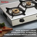 Rich Flame Gas Stove 4 Burners Steel Body | ISI Certified 4 Burner Stoves | Home & Kitchen Gas Chulha LPG & PNG Compatible | Manual Ignition Cooktops Stainless Steel Brass Burner | Quardo’ Silicon