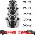 5 PCS Bowls Stainless Steel Tope Set Cookware Set | Container | Tope | Patila | Tapeli | Handi | Kitchen Cooking and Serving Bowl | Dining Set | Pot Sets | Cooking Serving Biryani | Punjabi Pot Pan Combo Handi |Chiken Fish And Rice Boil | Stainless Steel Gas Compatible Handi Set