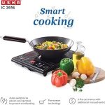 USHA Cook Joy (3616) 1600-Watt Copper Sealed Induction Cooktop (Black) & Goliath GO1200WG Heavy Weight 1200-Watt Dry Iron, 1.8 Kg(Red)