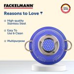 Stainless Steel Colored Deep Colander For Washing Fruits and Vegetables – 28cm Kitchen Tool Set (Blue, Colander)